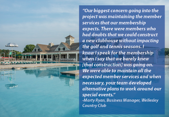 Another key area to success is getting a realistic budget early in the design process. In most cases, gaining member and board approval can be a large hurdle, and a surprise cost increase in the 9th inning can be a deal breaker. It’s important for the golf club General Manager and club building committee to bring on a construction manager/general contractor early in the design process to provide detailed Preconstruction Services, such as estimating, scheduling, constructability reviews, and logistics planning. This gives you the pertinent information to make early and informed decisions for your project.